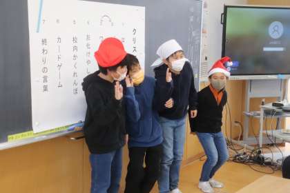 クリスマス集会を行いました。バスケットボールやかくれんぼなど、自分たちで考えた遊びを楽しんでいました。