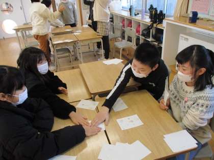 国語科 冬の楽しみ(4年生) 公開日 2023/01/12 更新日 2023/01/12 4年生 「冬の楽しみ」というテーマでかるたを作りました。 自分たちで冬休みの楽しかったことなどを思い出して作ったかるたを楽しみました。
