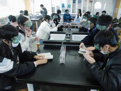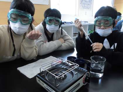 理科では、水溶液の性質について学んでいます。安全に気をつけながら実験をしています。