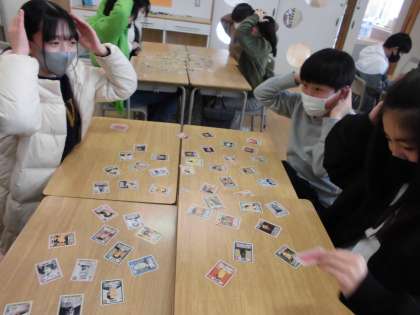社会科 (6年生) 公開日 2023/02/17 更新日 2023/02/17 6年生 社会科では、歴史を学び終えたため、歴史人物カルタを全種類でできるようになりました。なかなか覚えきることができていない人物も遊びながら覚えています。