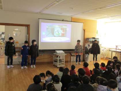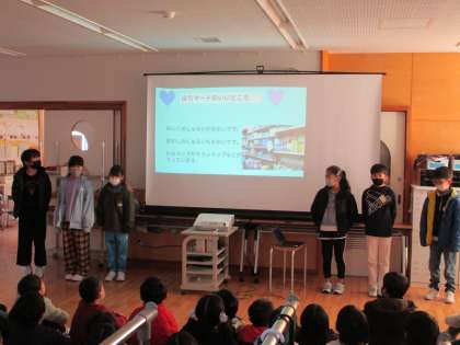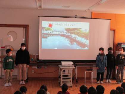 今日は、三成地区で見付けたステキなところを1、2年生に発表しました。相手に伝わりやすいように、文章や発表の仕方を工夫しました。これまで時間をかけて準備してきたスライドを、興味を持って見てもらうことができて子供たちも達成感を味わっていました。