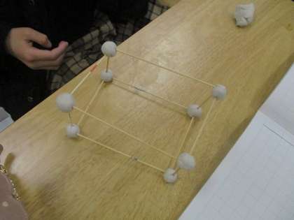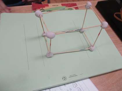 出来上がったはこの形を見て、辺の数や頂点の数を理解しました。