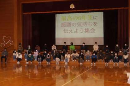 卒業を祝う集会 公開日 2023/03/06 更新日 2023/03/06 5年生 「最高の6年生に感謝の気持ちを伝えよう集会」がありました。 各学年の出し物やなかよし班解散式を通して、6年生に感謝の気持ちを伝えました。6年生も在校生にダンスのプレゼントをしてくれました。
