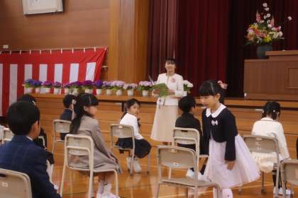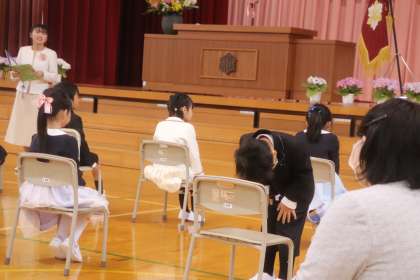 担任の先生から名前を紹介され、しっかりと姿でお辞儀ができました。