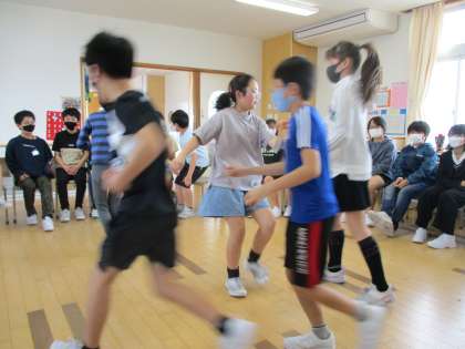 学級集会(6年生) 公開日 2023/04/11 更新日 2023/04/11 6年生 「6年生がんばろう集会」をしました。担任の先生からのクイズやフルーツバスケット、ハンカチ落とし等、楽しく活動しました。