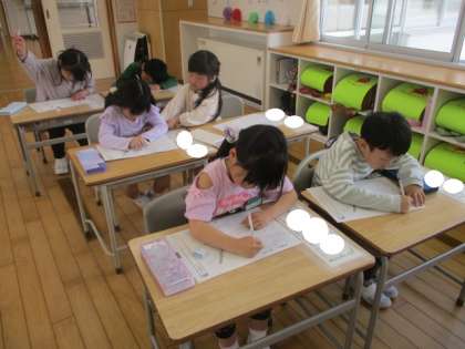 国語科 えんぴつとなかよし(1年生) 公開日 2023/04/15 更新日 2023/04/15 1年生 書くときの姿勢やえんぴつの正しい持ち方を学習し、線をなぞりました。線からはみ出さないように真剣に集中して取り組んでいます。