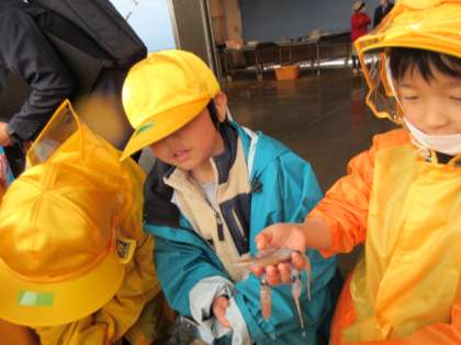 ホタルイカ見学会(2年生) 公開日 2023/04/18 更新日 2023/04/18 2年生 水橋水産物荷さばき施設へ行ってきました。ホタルイカを触ったり食べたり、光る様子を見学したりして楽しみました。