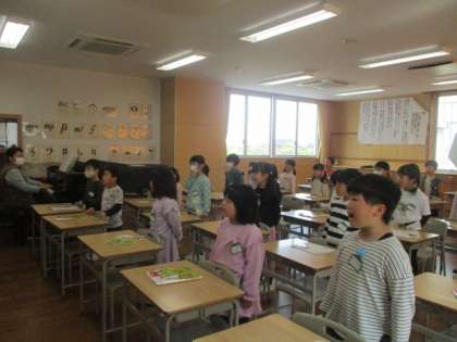 音楽科 校歌の練習(1年生) 公開日 2023/04/19 更新日 2023/04/19 1年生 音楽では、校歌の練習をしました。みんなで声をそろえて上手に歌うことができました。教室に戻ってからも、校歌を口ずさむ姿が見られました。