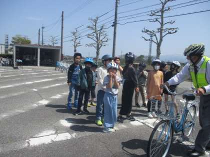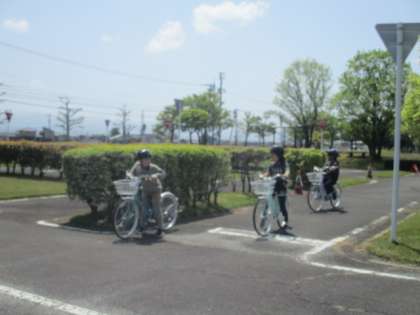 自転車教室へ行ってきました。自転車の乗り方やルールについて学習しました。
