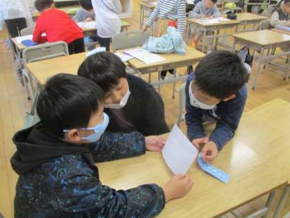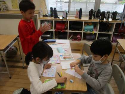 生活科(2年生) 公開日 2023/04/26 更新日 2023/04/26 2年生 1年生を学校案内する計画を立ててきました。紹介文をすらすら言えるように練習したり、案内しやすいように名札を作ったりしている子供たちの様子です。