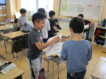 How are you?の表現を使って、友達に体調を尋ねることができました。楽しみながら英語を活用しています。