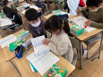 漢字辞典の使い方(4年生) 公開日 2023/05/10 更新日 2023/05/10 4年生 国語科の学習で漢字辞典の使い方を学習しました。音訓索引や部首索引など、調べる漢字によって索引の仕方を変えながら探していました。子供たちの様子です。