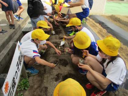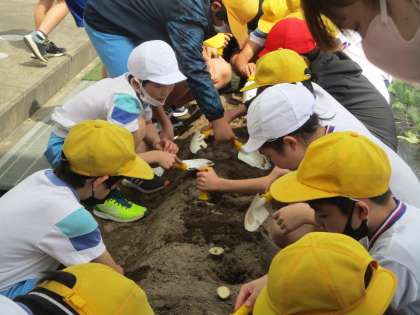 理科の学習の一貫でじゃがいもを植えました。最後には収穫して食べることができることを聞き、たくさんできてほしいと願っていました。