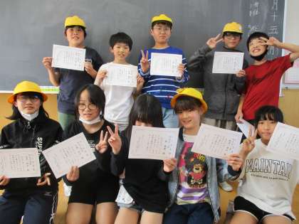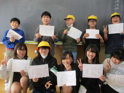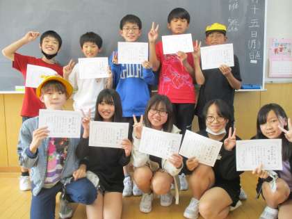ハードル走表彰式 (6年生) 公開日 2023/05/12 更新日 2023/05/12 6年生 ハードル走の学習を終えて子どもたちに賞状を渡しました。最高記録賞と50m走との差が小さいで賞、伸び率が大会で賞の男女5位までに配り、子どもたちは自分のがんばりを感じていました。