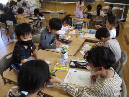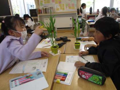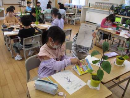 いよいよ明日は野菜の苗植えです。五感を働かせながら、自分の育てる苗の観察をしていました。