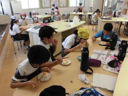 調理実習(5年) 公開日 2023/05/17 更新日 2023/05/17 5年生 卵を茹でる実習をしました。 5分、7分、10分と時間によって卵の黄身がどのようになっているかを確かめながら実習しました。卵はみんなで美味しくいただきました。