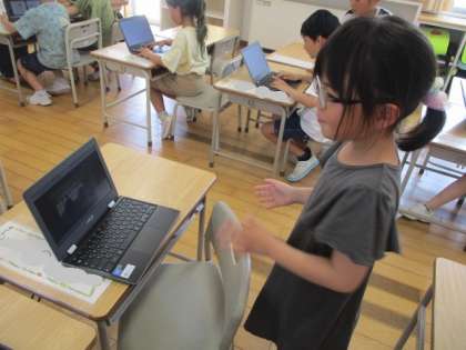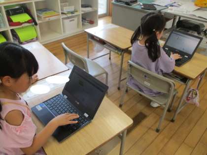 クロームブック2(1年生) 公開日 2023/05/18 更新日 2023/05/18 1年生 昼休みには、自分のクロームブックを使って、運動会の応援の動画を見て練習したり、タイピングに挑戦したりしました。初めてのクロームブックにわくわくした様子の子供たちの様子です。