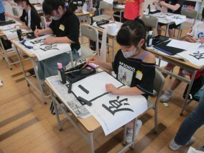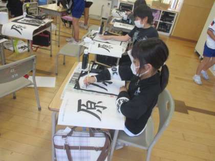書写「原」(4年生) 公開日 2023/05/23 更新日 2023/05/23 4年生 書写で部分の組み立て(かまえ・たれ)の練習が始まりました。筆の持ち方、はらいに気を付けて練習している子供たちです。