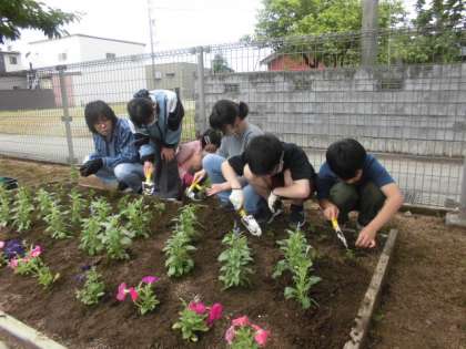 花に優しい植え方を教えてもらい、配置を考えながら丁寧に作業しました。