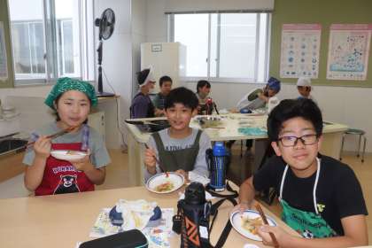 自分たちで作った野菜炒めは、とてもおいしかったらしく、みんなでおかわりをしていました。