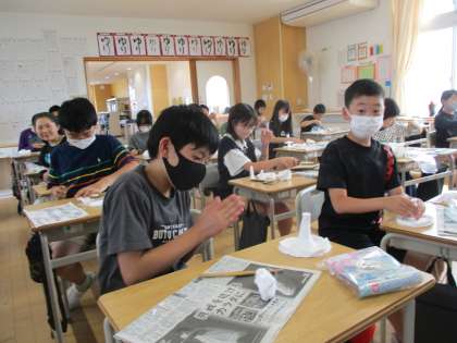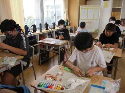 図画工作科(6年生) 公開日 2023/05/30 更新日 2023/05/30 6年生 図画工作科では、「水の流れのように」というテーマで粘土の制作を始めました。どのような水の流れにしようか考えながら活動していました。