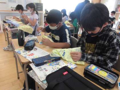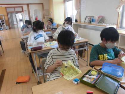 家庭科 裁縫(5年) 公開日 2023/05/31 更新日 2023/05/31 5年生 玉結び、玉留めを練習しました。始めは糸を指の上で滑らせることができず玉結びを作ることができなかった子も、何度も挑戦していくうちに上手にできるようになりました。