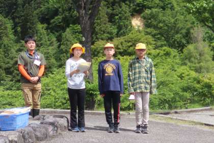 宿泊学習いよいよスタート!出発式、入所式を行いました。礼儀正しく行うことができました。