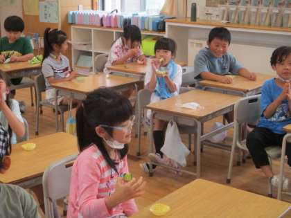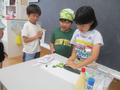 野菜がぐんぐん育ってきています。今日は、初収穫したキュウリをみんなでおいしくいただきました。