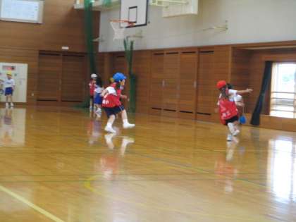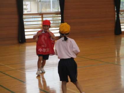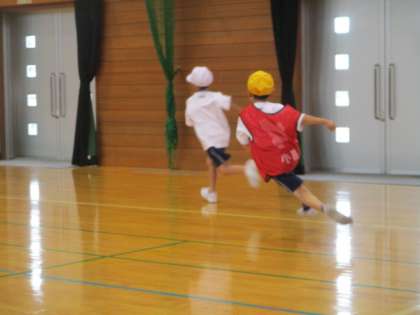 鬼がどんどんかわっていく、かわりおにごっこをしました。広い体育館全面を使い、思い切り走り回って楽しみました。