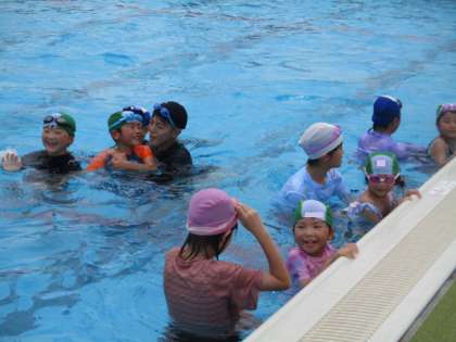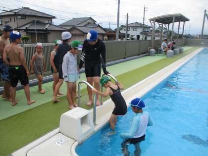 今日はプール開きでした。子供たちは校長先生のお話やプールの約束を真剣に聞くことができました。その後は、6年生とプールに入りました。足が届かないところなど、6年生に支えてもらいながら楽しく水泳学習をしました。