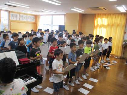 合唱練習(3年生) 公開日 2023/09/01 更新日 2023/09/01 3年生 区域連合音楽会の練習が始まりました。今日の目標は、「大きな声でていねいに歌うこと」でした。子供たちは夏休みにお手本を聞いてよく練習しており、上手に歌うことができていました。これからの練習でさらにレベルアップできるよう頑張っていきましょう!