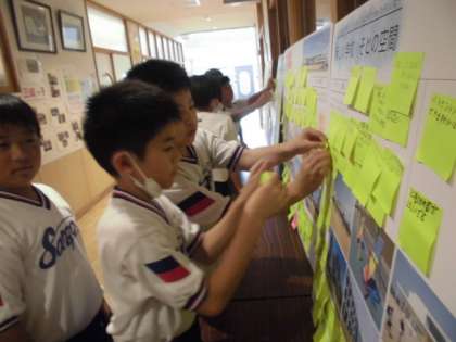 水橋学園の説明を聞いて、子供たちは「新しい学校でこんなことがしたいな」「こんな場所・ものがあったらいいな」と考えていました。