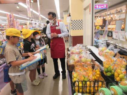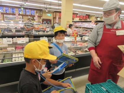 スーパーマーケット見学(3年生) 公開日 2023/09/19 更新日 2023/09/19 3年生 スーパーマーケットの売り上げを高めるための工夫を見付けに行きました。子供たちは気になることを店員さんに積極的にインタビューしたり、売り場にある商品や看板をよく観察したりして、たくさんの工夫を見付けることができました。