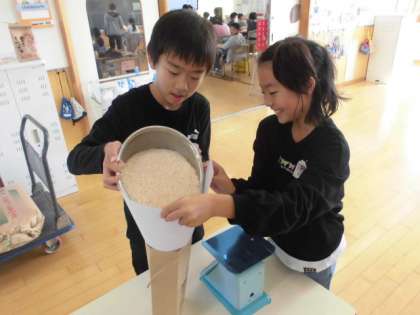 米の袋詰め(5,6年生) 公開日 2023/10/11 更新日 2023/10/11 5年生 5月に田植えをし、9月に稲刈りをしたお米が精米され届いたので袋に詰めて持ち帰りました。子供たちは「農家の方がずっとお世話してくださったことに感謝して食べたい」「このお米を味わって食べたい。そして総合の学習にもつなげていきたい」と嬉しそうに話していました。