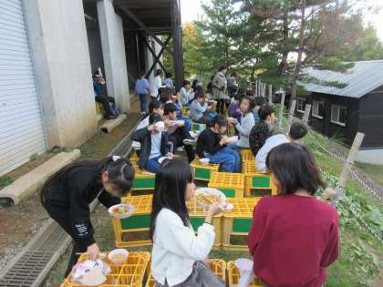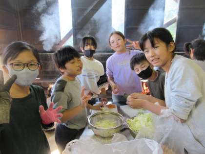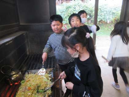 4・5年生宿泊学習(富山市教育活動センター)02 公開日 2023/10/28 更新日 2023/10/28 三成っ子 はじめの活動は野外炊飯です。班のみんなと協力して焼きそばを作りました。 みんなで作った焼きそばの味は最高に美味しかったです。