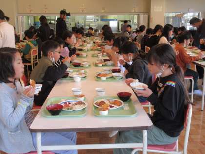 4・5年生宿泊学習(富山市教育活動センター)08 公開日 2023/10/28 更新日 2023/10/28 三成っ子 昼食は、食堂での最後の食事でした。 体をいっぱい動かしたあとの食事は美味しくて、たくさんおかわりしました。