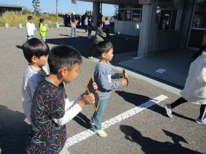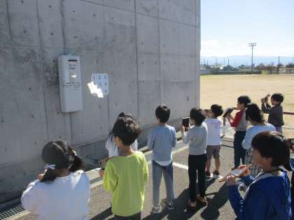 はね返した日光がどのように進むかを鏡を使って調べました。