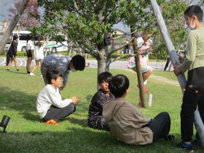 天気もよく、芝生で昼ご飯を食べました。その後、みんなで鬼ごっこをしたり、楽しく会話をしたりして過ごしました。