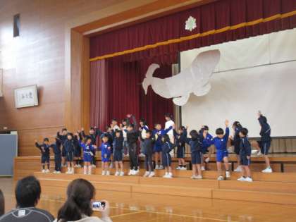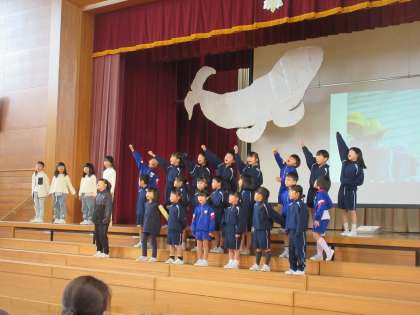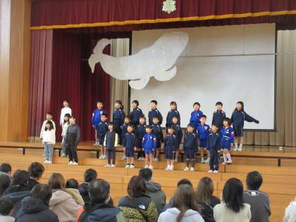 学習発表(1年生) 公開日 2023/11/18 更新日 2023/11/18 1年生 初めての学習発表は、少し緊張した様子の子供たちでしたが、最後までやりきる姿が見られました。ステージ発表を終えて、「元気よく歌えたよ」「大きな声で台詞を言えたよ」と満足した様子でした。