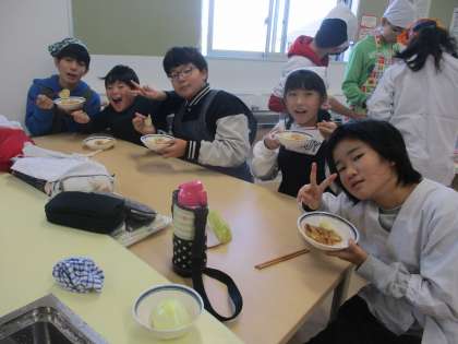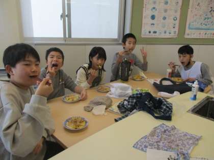 作ったおかずをグループで食べました。とてもおいしかったです。