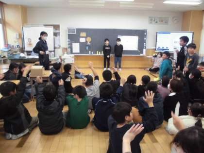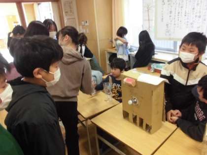 5年生は「4年生のおかげでエコについてもう一度考えることができた」「普段捨ててしまうゴミでも工夫したら楽しく遊べることが分かった」など、異学年での交流を通しての学びを感じていました。