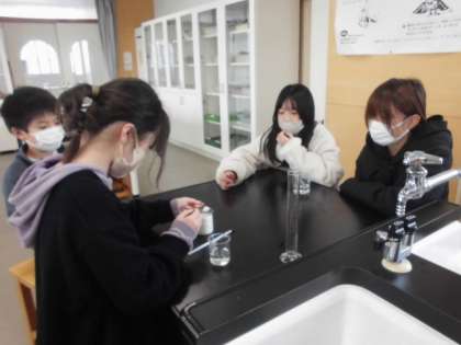 理科 物のとけ方(5年) 公開日 2023/12/19 更新日 2023/12/19 5年生 メスシリンダーで計りとった水に食塩やミョウバンを溶かす実験を行いました。 手順や方法を確認しながら実験に取り組みました。