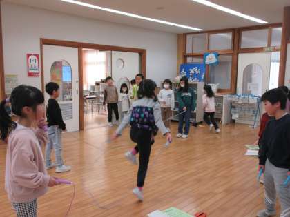 チャレンジタイム(1年生) 公開日 2023/12/20 更新日 2023/12/20 1年生 2学期最後のチャレンジタイムでした。12月からの取組は縄跳びになり、短縄の様々な跳び方や大縄に挑戦しました。