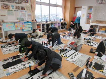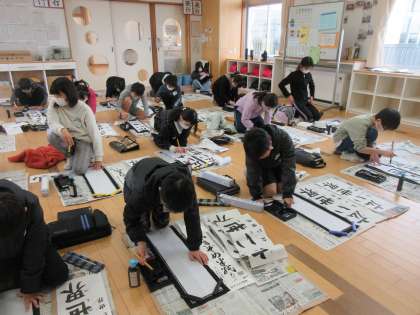 書初練習(5年生) 公開日 2023/12/21 更新日 2023/12/21 5年生 最後の書初練習をしました。手本を見ながら、一画一画丁寧に書き進めていました。1月9日(火)の校内書初大会に向けて、「もっと練習しよう」と意欲を高めていました。