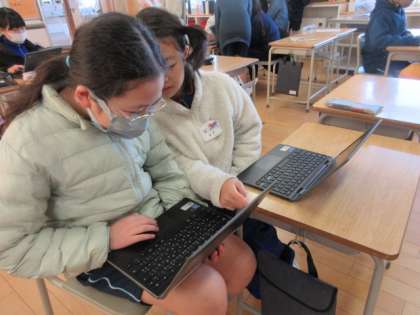 総合的な学習の時間 学習のまとめ(5年生) 公開日 2024/01/17 更新日 2024/01/17 5年生 総合的な学習の時間には、学習のまとめをしています。 クロムブックを上手に使って、発表原稿を作成しています。