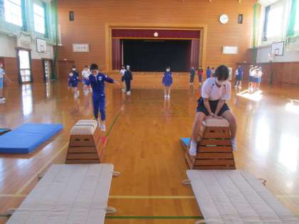 体育科では、とび箱運動を行っています。勇気を出して高い段に挑戦しました。