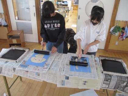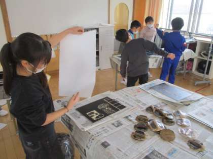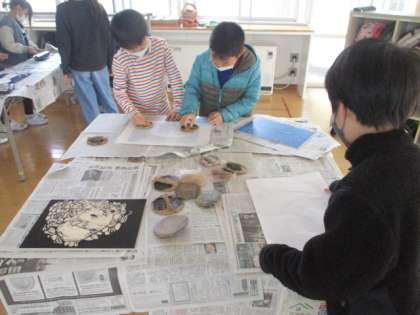 図画工作科の学習で、版画を刷りました。インクの色を決めて、塗り残し・刷り残しがないように丁寧に印刷していました。