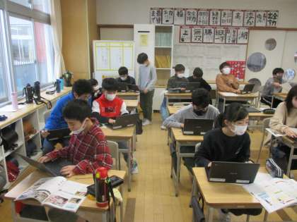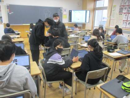 社会科では、世界の国々についてスライドにまとめています。自分の興味のある国を選び国の特色を調べています。