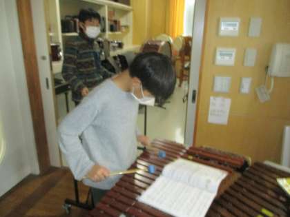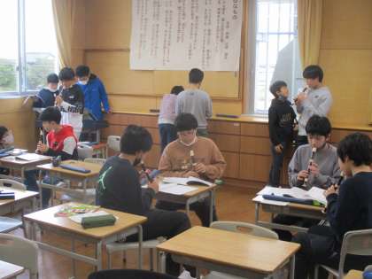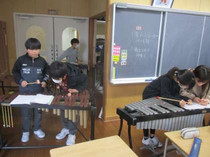 音楽科では、「風をきって」の合奏練習を行っています。自分の担当の楽器を演奏できるように熱心に練習しています。