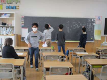 休み時間は友達と黒板に絵を描いたり、ドッジボールで遊んだりと、思い思いに活動しています。